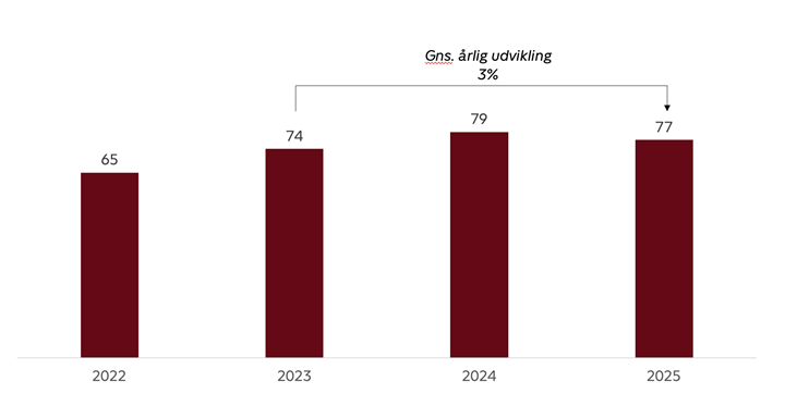 I 2025 streamer hver dansker i gennemsnit 1 time og 17 minutter om dagen. Kigger vi to år tilbage, svarer det til en gennemsnitlig årlig vækst i forbruget på 3 procent. Men mens 2024 var et ekstraordinært stort tv-år, hvor væksten var helt oppe på 10 procent, er væksten i streamingmarkedet nu aftagende.