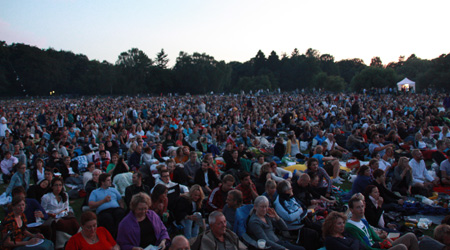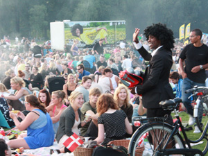 Et udsnit af de knap 10.000 filmelskere, som torsdag aften deltog i Zulu Sommerbio i Fælledparken i København.