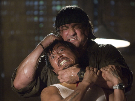 Sylvester Stallone (øverst) som den hårdkogte amerikanske veteran og enspænder John Rambo i actionfilmen "Rambo" fra 2008.